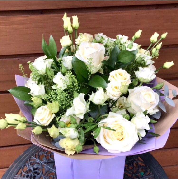 This lovely mix of seasonal whites with complimenting filler and foliage is the perfect elegant, classy gift for Valentines Day.