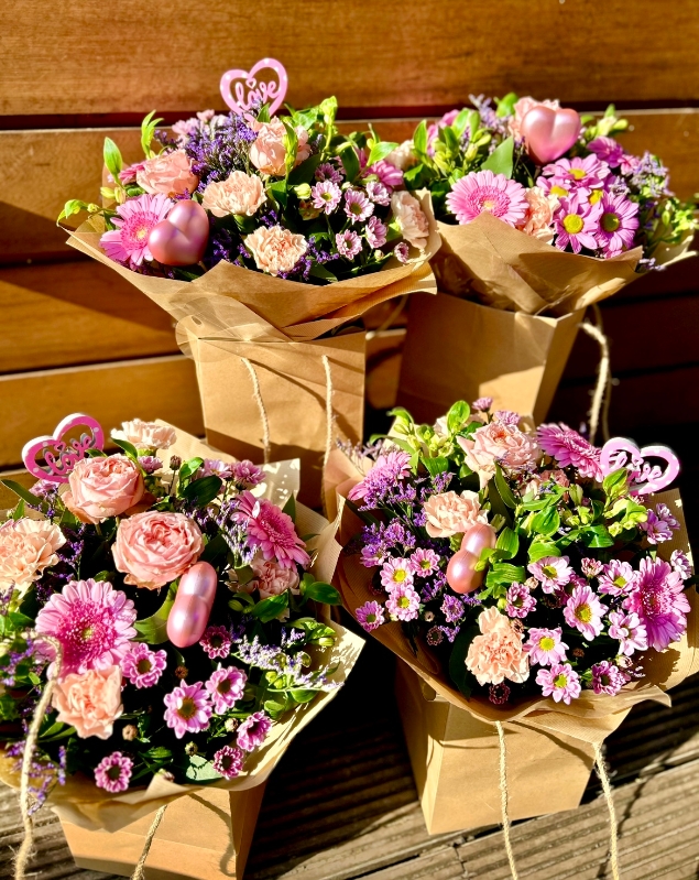 Beautifully arranged, gift wrapped, aqua packed and placed in a bag ready for delivery or collection on Mothering Sunday.