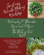 Get into the Christmas spirit and join us for an afternoon or an evening of festive fun creating your own Christmas door wreath at the Duke of Kent pub in Scotch Common W13.
